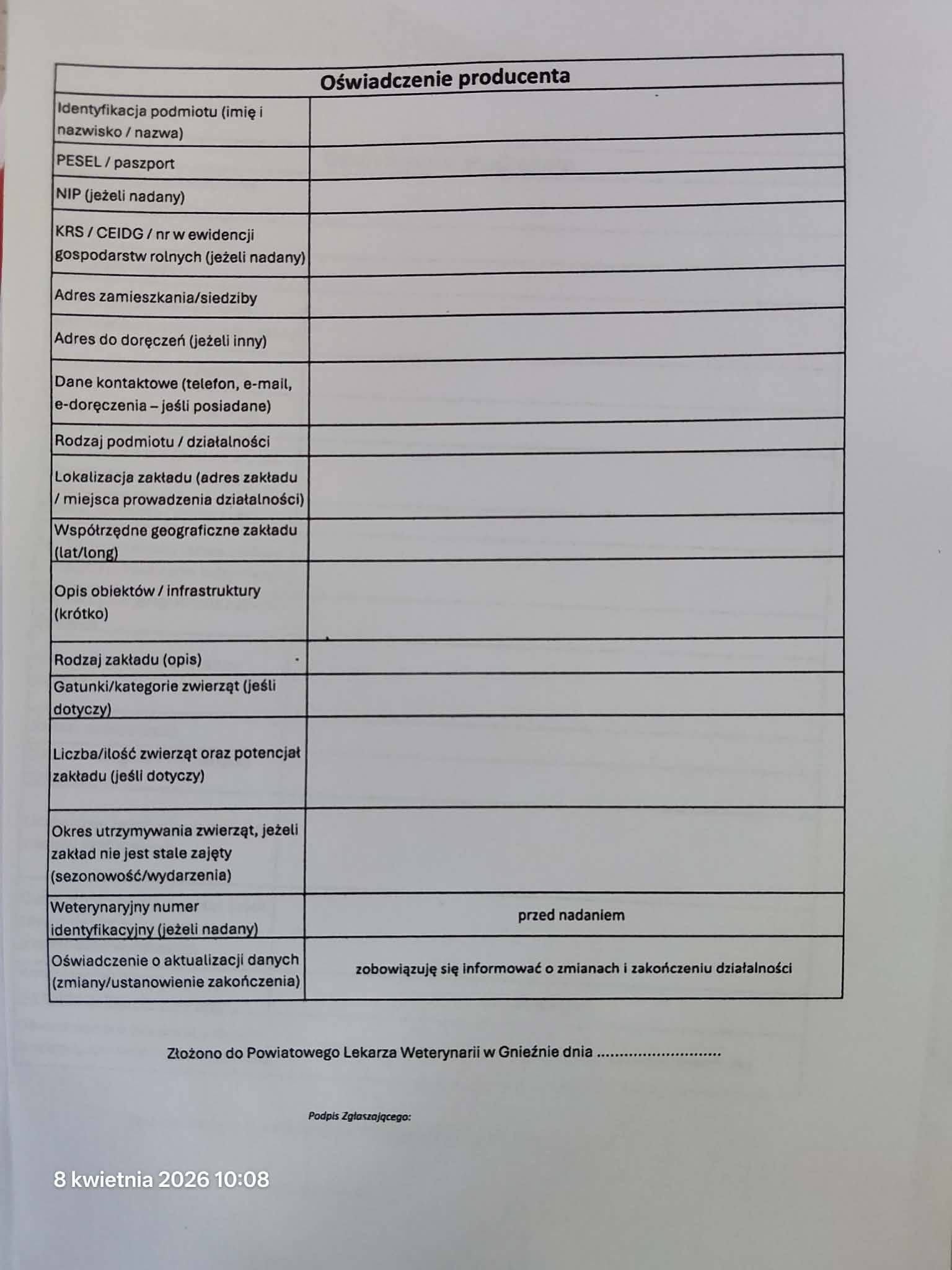 Konsekwencje: brak zgłoszenia w wyznaczonym terminie będzie stanowić naruszenie przepisów. Pszczelarze figurujący już w rejestrze muszą złożyć wniosek o aktualizację danych - w wyniku tego wpis zostanie dostosowany do nowego systemu, a pasiece nadany zostanie nowy numer identyfikacyjny. Termin na dokonanie aktualizacji: do 18 czerwca 2026 r.